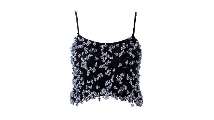 Μπλούζα πλεκτή στο χέρι ασπρόμαυρη με λευκές ακρυλικές χάντρες.