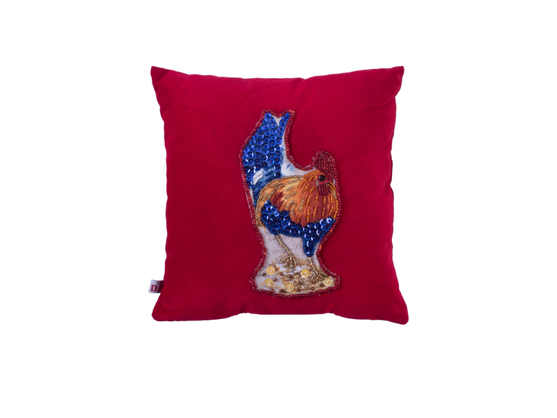Κόκκινο βελούδινο διακοσμητικό μαξιλάρι (32×36)με βαμβακερό απλικέ κεντημένο στο χέρι