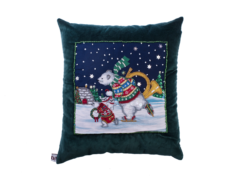 Πράσινο βελούδινο διακοσμητικό μαξιλάρι (45×45) με βαμβακερό απλικέ κεντημένο στο