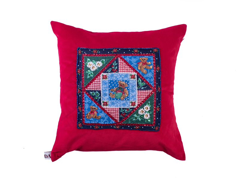 Κόκκινο βελούδινο διακοσμητικό μαξιλάρι (45×45) με βαμβακερό απλικέ, κεντημένο στο