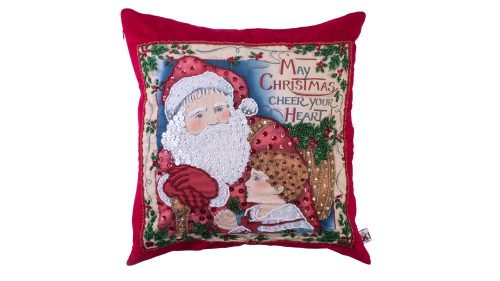 Κόκκινο βελούδινο διακοσμητικό μαξιλάρι (45×45) με βαμβακερό απλικέ